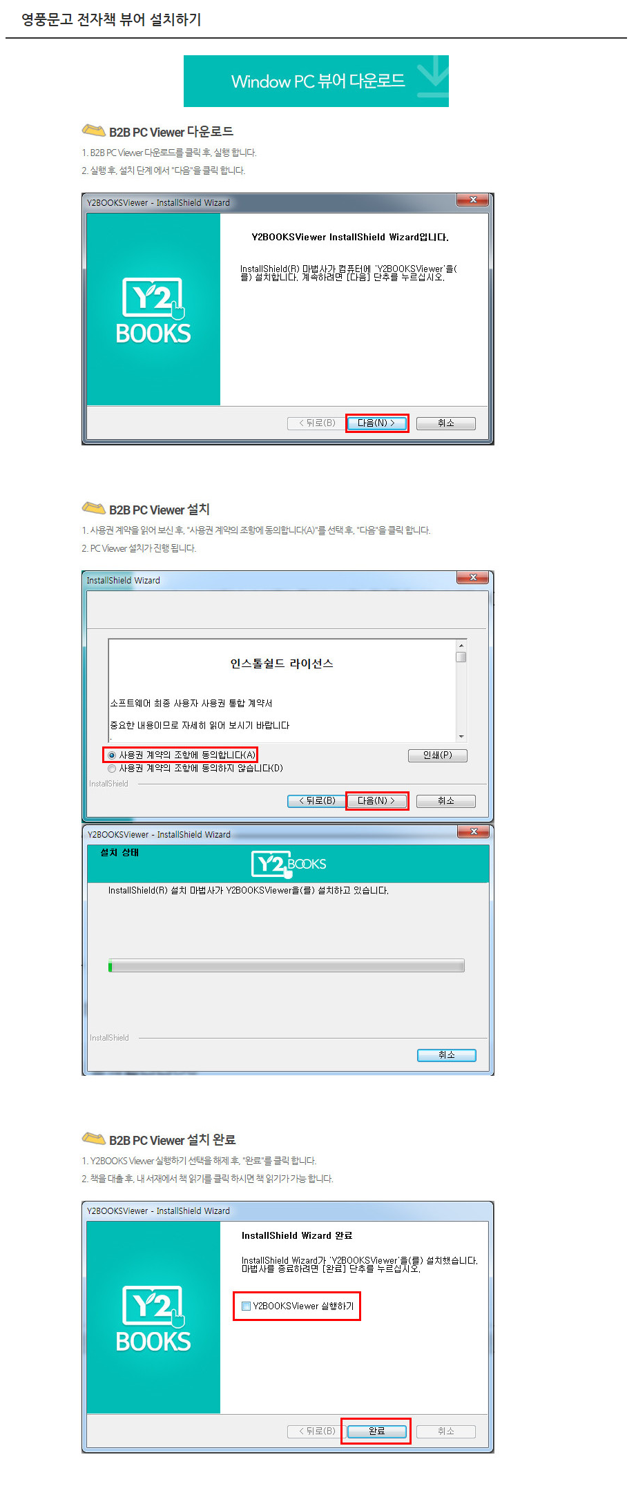 이용안내를 클릭하시면 각 공급사의 PC뷰어를 다운로드 받으실 수 있습니다.